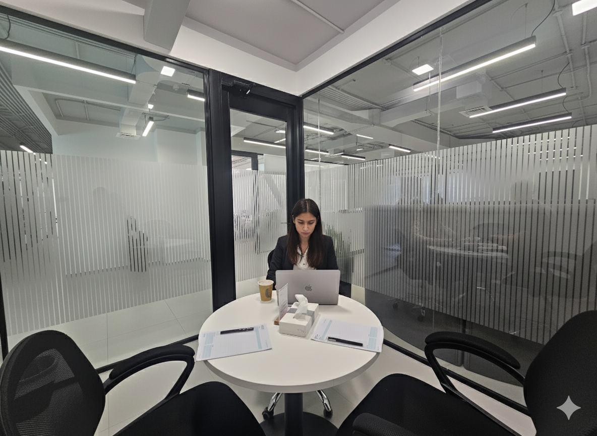 مساحة اجتماعات خاصة ومضغوطة مصممة للنقاشات المركّزة وجلسات المجموعات الصغيرة. تحتوي القاعة على طاولة دائرية تتسع لـ 3–4 أشخاص، مما يجعلها مثالية للاجتماعات الفردية، المقابلات، أو جلسات العصف الذهني السريعة. تتميز الجدران الزجاجية بطابع عصري مع توفير الخصوصية الصوتية، لتوفّر بيئة مهنية ومريح...