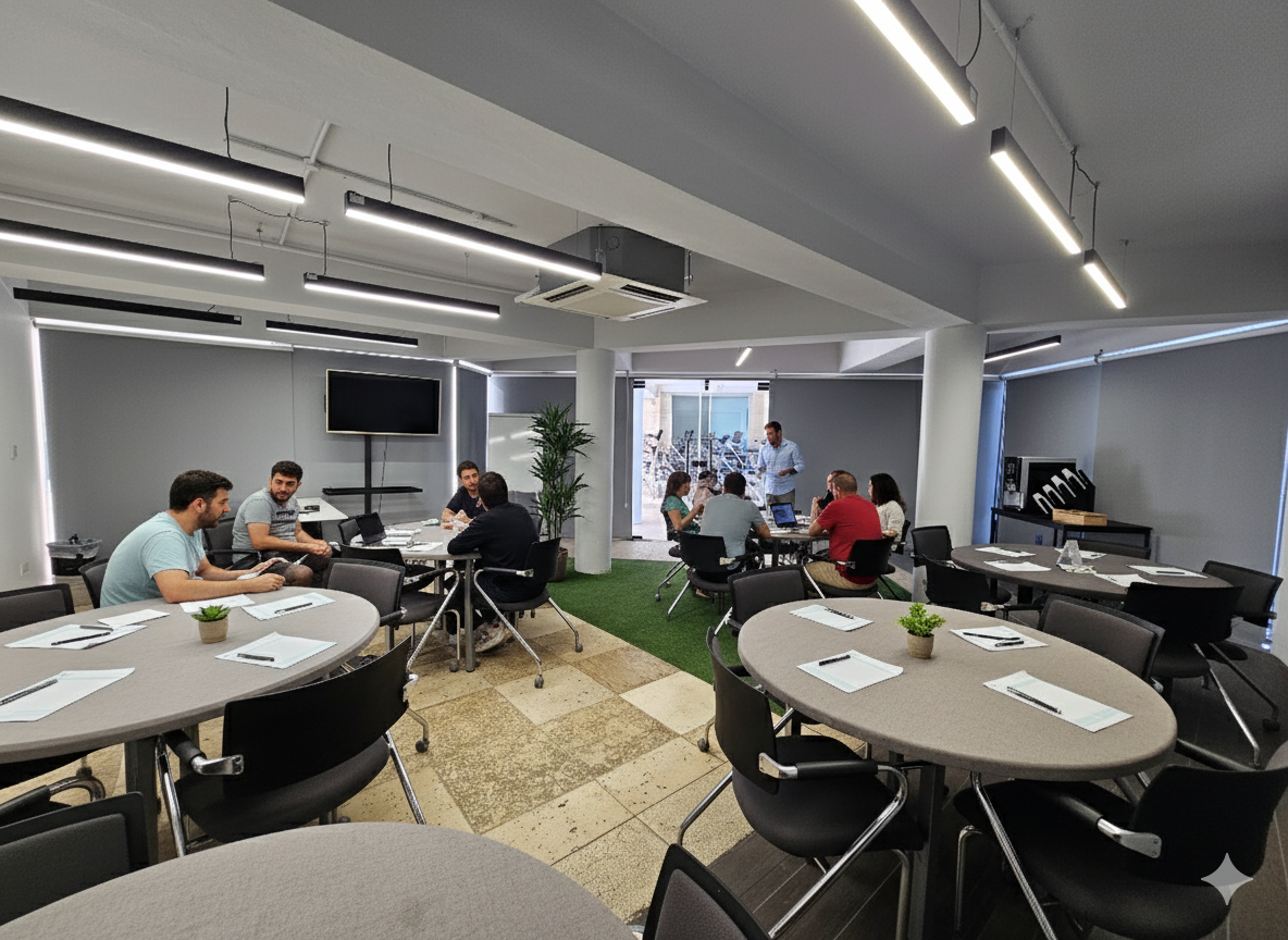This dynamic training room is designed for group activities, workshops, and interactive learning. The round table setup encourages collaboration and open discussion, making it ideal for team-based sessions and breakout exercises. Equipped with a large screen, whiteboard, and flexible lighting, the r...